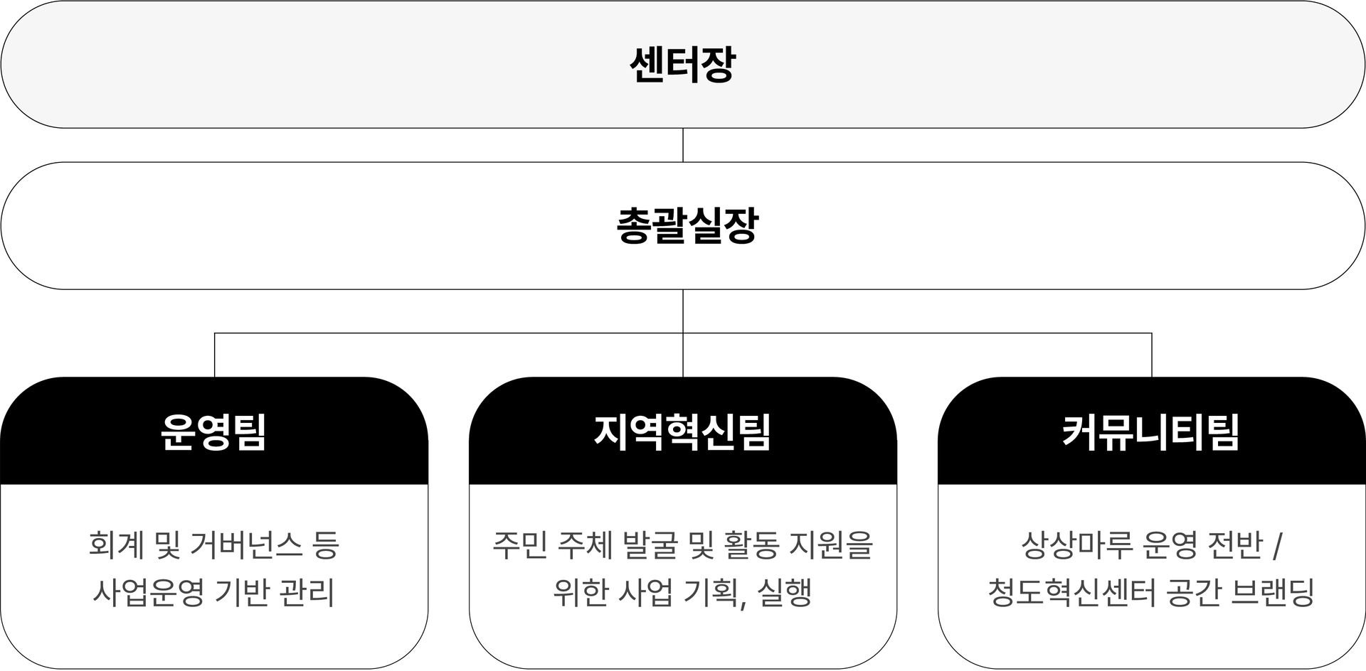 경북-청도에서 지역이 당면한 문제를 발굴하고 해결 실험을 통해 주민의 삶의 만족도 향상과 지역을 활발하게 할 수 있도록 하는 데에 함께 하고 있으며, 지역 내 다양한 프로그램과 사업들을 기반으로 소통과 협력을 통해 지역의 고유성과, 창조성 등을 활성화하고 매력적인 지역을 만들기 위해 주민들과 함께 하고 있습니다.